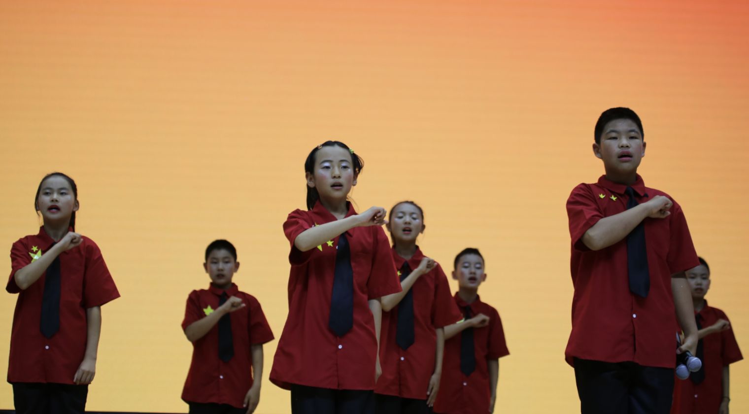 随后,来自为民教育集团的五所学校——为民小学、系马庄小学、鸡碧小学、文笔小学及雨旸学校的师生们齐聚一堂,以歌舞、器乐、短剧等多元形式共庆童年。他们在舞台上展现才艺,也在互动中加深了解,让红色革命文化、中华传统文化与现代文明在乡村社区交融碰撞。